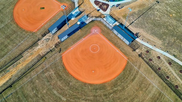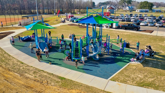 Archer Lodge Town Park located at 2636 Castleberry Rd, features 2 ballfields, 2 multipurpose fields, a playground, a paved walking trail, a shelter, bathrooms, and paved parking.